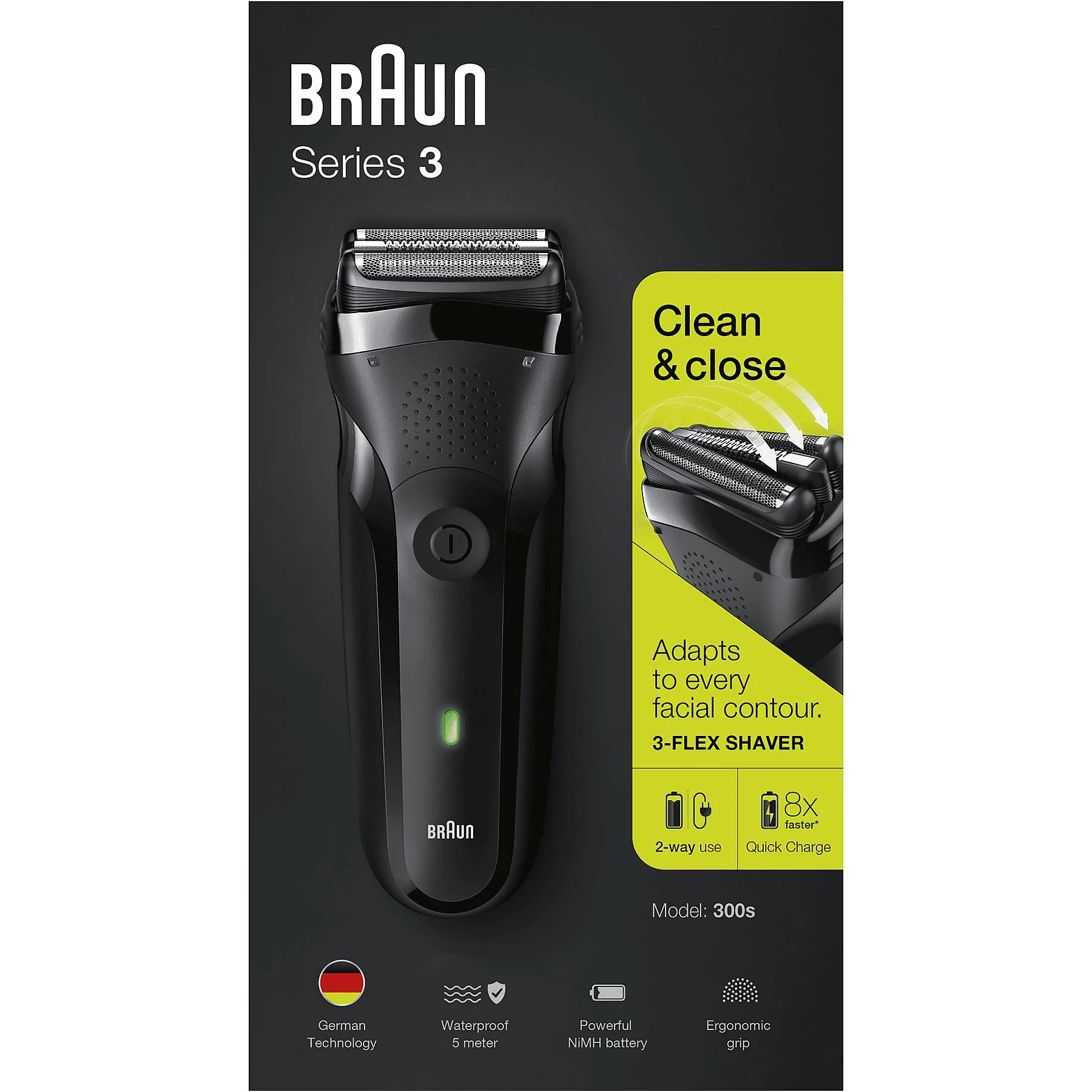 Afeitadora eléctrica Braun Series 3 300s Black, diseñada para ofrecer un afeitado rápido, cómodo y al ras con total suavidad para la piel.