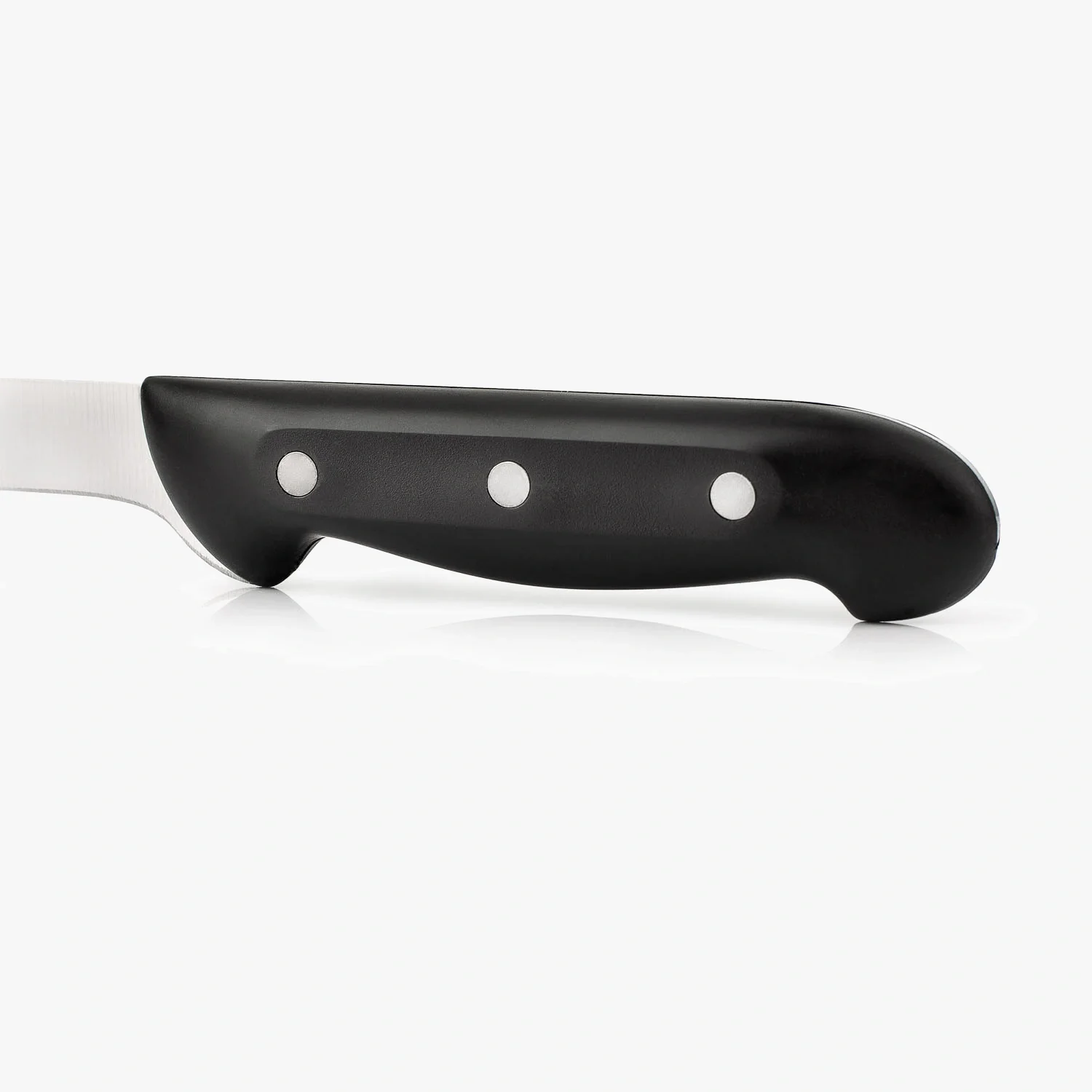 Cuchillo jamonero de hoja larga y flexible diseñado para cortar lonchas finas de jamón con precisión.